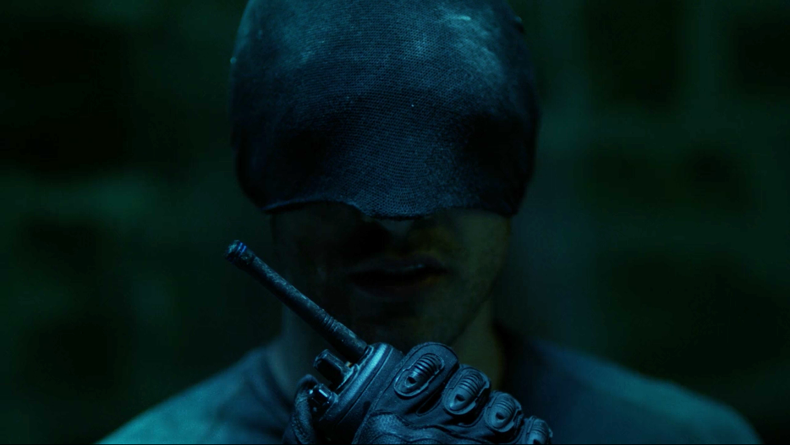 In a flashback we see a young Matt Murdock (Skylar Gaertner) saving a man from a car accident, it all goes south though when a batch of chemicals spill and they blind him. In present day Murdock (Charlie Cox), wears a black mask and is fighting four guys who are trying to put some women in a shipping container.